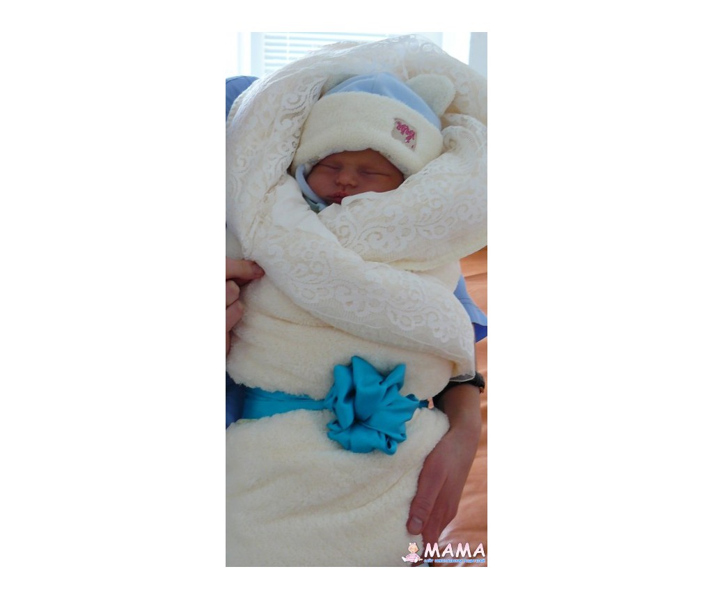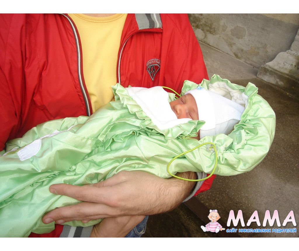 К чему он? Я так и не поняла... Мы в одеялко завернулись и все) Это был апрель и день выдался жаркий. Можно было и что-то по-тоньше. От фото в роддоме мы отказались, а то что щелкнули на сво фотик, там его и не видно было бы.