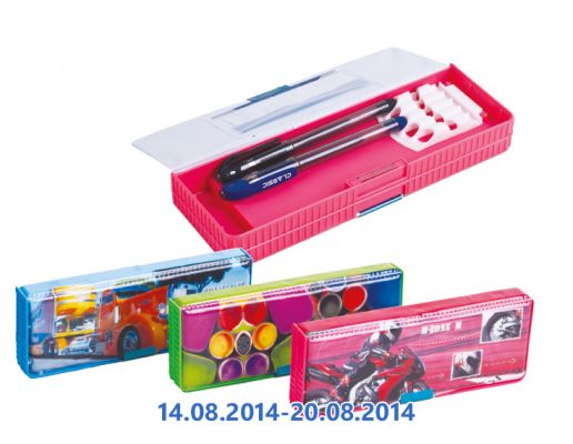 В АТБ вот такие пеналы по 20 грн, мы три года ими пользовались, ОЧЕНЬ удобные, два отделения сверху и снизу, на магнитах, однако при неаккуратном обращении крышка рано или поздно оторвется. Однако при такой цене неважно.