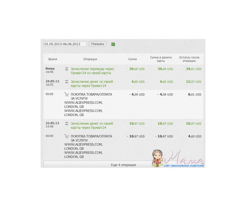 Добавила фото, правда обратила внимание сначала идет минусом как запрос (авторизация), сутки Али проверяет оплату, и потом проходит полное списание, но время оплаты счета меняется на 0-00.