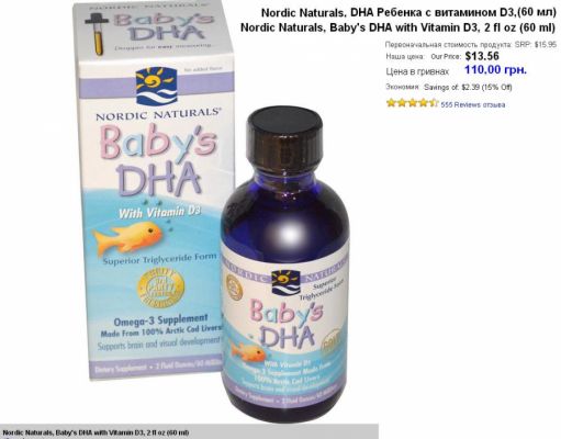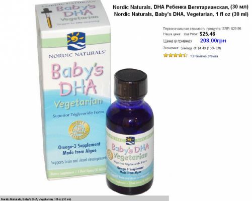 Nordic Naturals, Baby's DHA with Vitamin D3, 2 fl oz (60 ml) $13.56 110 грн.