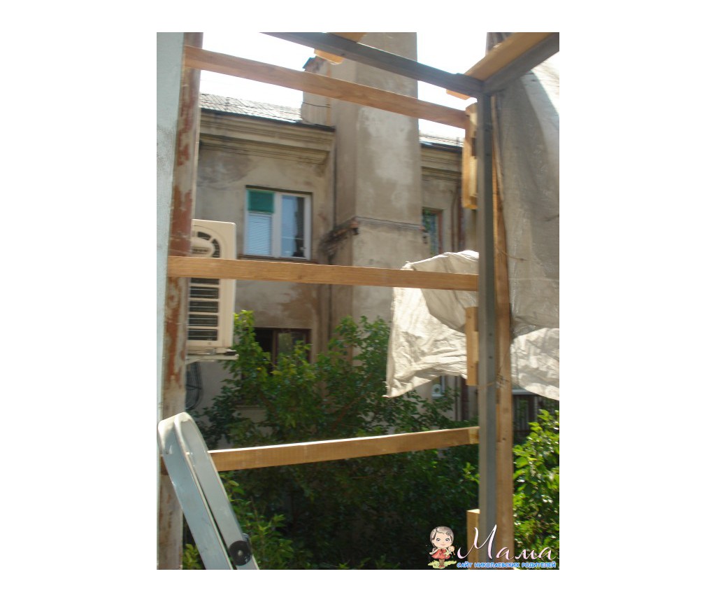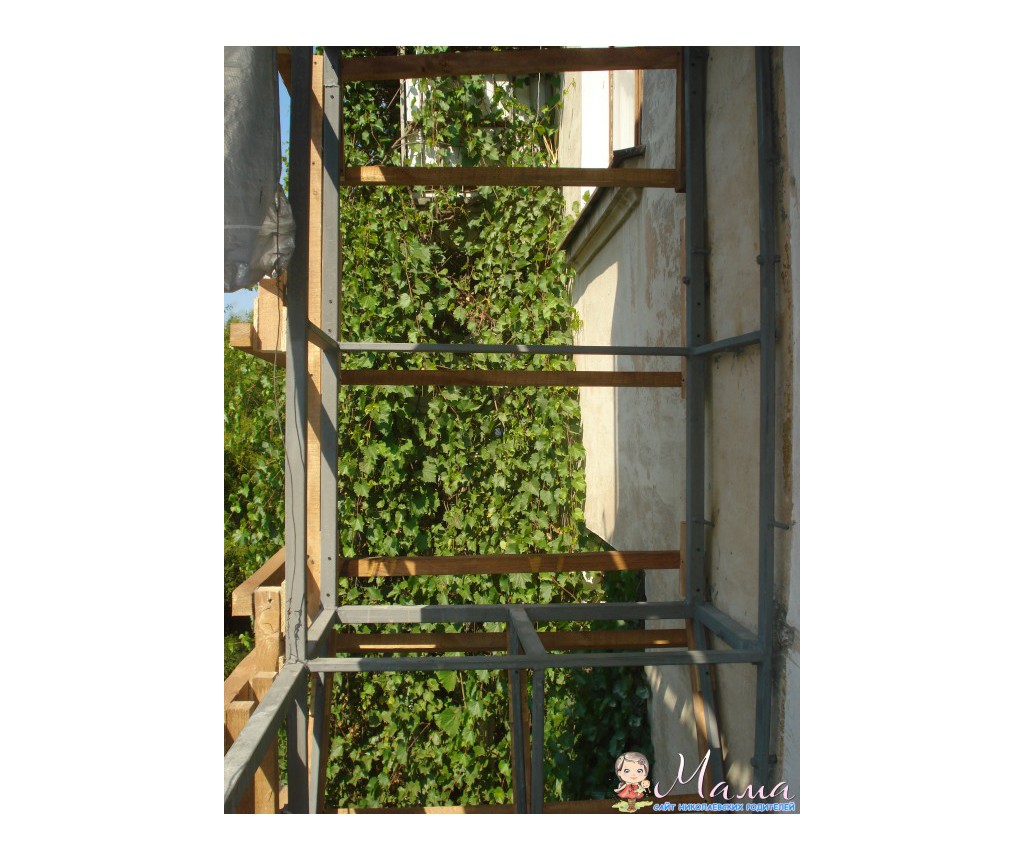 Наш балкон наконец дождался реконструкции. Вызвала я мастеров, мне посчитали, все красиво описали, я согласилась, делают. Балкон размером 1200х2500. Делаем балкон в три этапа: 1. Сварка каркаса( сюда входит: демонтаж, сварка рамы балона и крыши,каркас выносного шкафа 500х1500х1200, обивка профнастилом цвет слоновой кости, гидроизоляция, монтаж крыши и юбка на верхней плите), еще по свареному каркасу сделан дополнительно каркас из дерева(на фото видно).