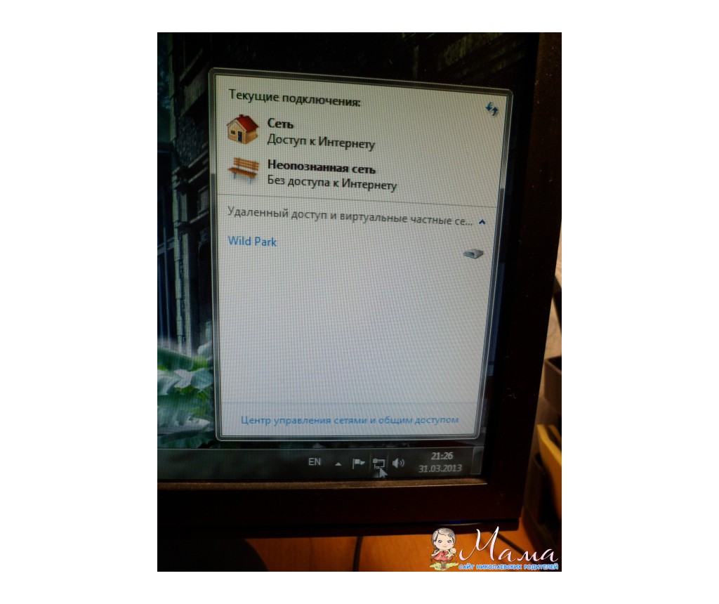 31 March 2013 Цитата: #5919 Юлия_J 31 March 2013, 20:38Так, пробую рассказать, что муж показал как настроить. На нижней панели рабочего стола, в правом нижнем углу есть иконка "монитора с трезубцем", нажимаем на ней правой кнопкой мыши, выскочит рамка- на ней выбираем "Центр управления сетями и общим доступом". Выбрали.