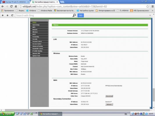 У меня вчера по непонятной причине произошёл сбой настроек маршрутизатора ( у меня TP-LINK). Вечером выключала его и всё было нормально, утром почему-то не включился. Позвонила в Дикий сад, сначала подумала, что деньги за Интернет закончились, но девушка сказала, что деньги есть, но моего вай-фая она в сети не видит, видимо причина в сбое настроек и посоветовала зайти к ним на сайт, там есть подробное (в картинках) описание подключения маршрутизаторов по моделям. Я зашла, нашла свою модель,скачала себе картинки, потом сделала всё в точности как там написано. НО всё равно не хочет работать, даже комп через вай-фай не подключается в Интернету, только напрямую нужно провод подключать.