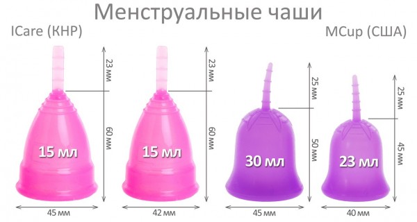 У нас можно приобрести чаши 2х производителей: Icare (КНР) и Mcup (США). Отличительной особенностью чаш Mcup является их уникальная форма. Строение чаши позволяет вместить бОльший объем жидкости, чем аналогичные чаши. А плотное кольцо раскрывается намного быстрее и надежнее. Кругленький хвостик абсолютно не ощущается внутри. Сравнительные характеристики чаш можно посмотреть на сайте http://mcup.com.ua/ в разделе "Характеристики".