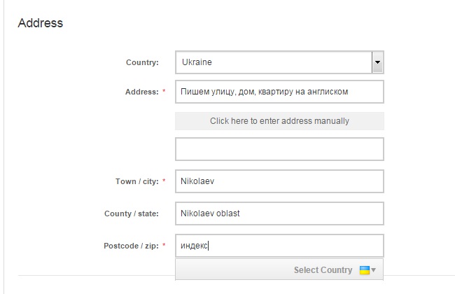 Заполняем имя и фамилия далее адрес, номер телефона в формате +380... и пароль. Все данные на англиском.