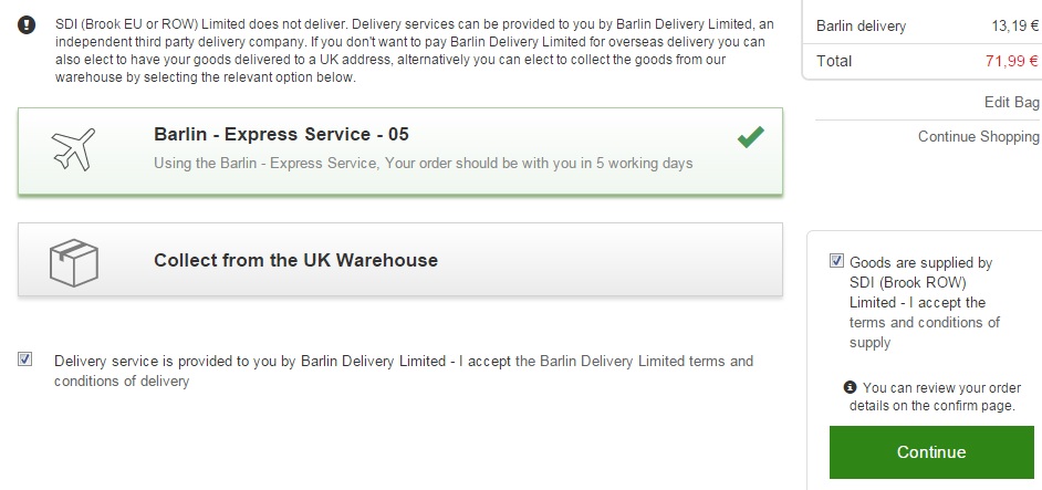 Далее подтверждаем, что знаем о таможенном лимите в 150 евро и согласны на доставку компании Barlin, но доставку все равно делает DHL, так что просто соглашаемся.