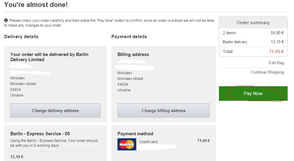 Далее последняя страница, проверяем все данные и нажимаем Pay Now