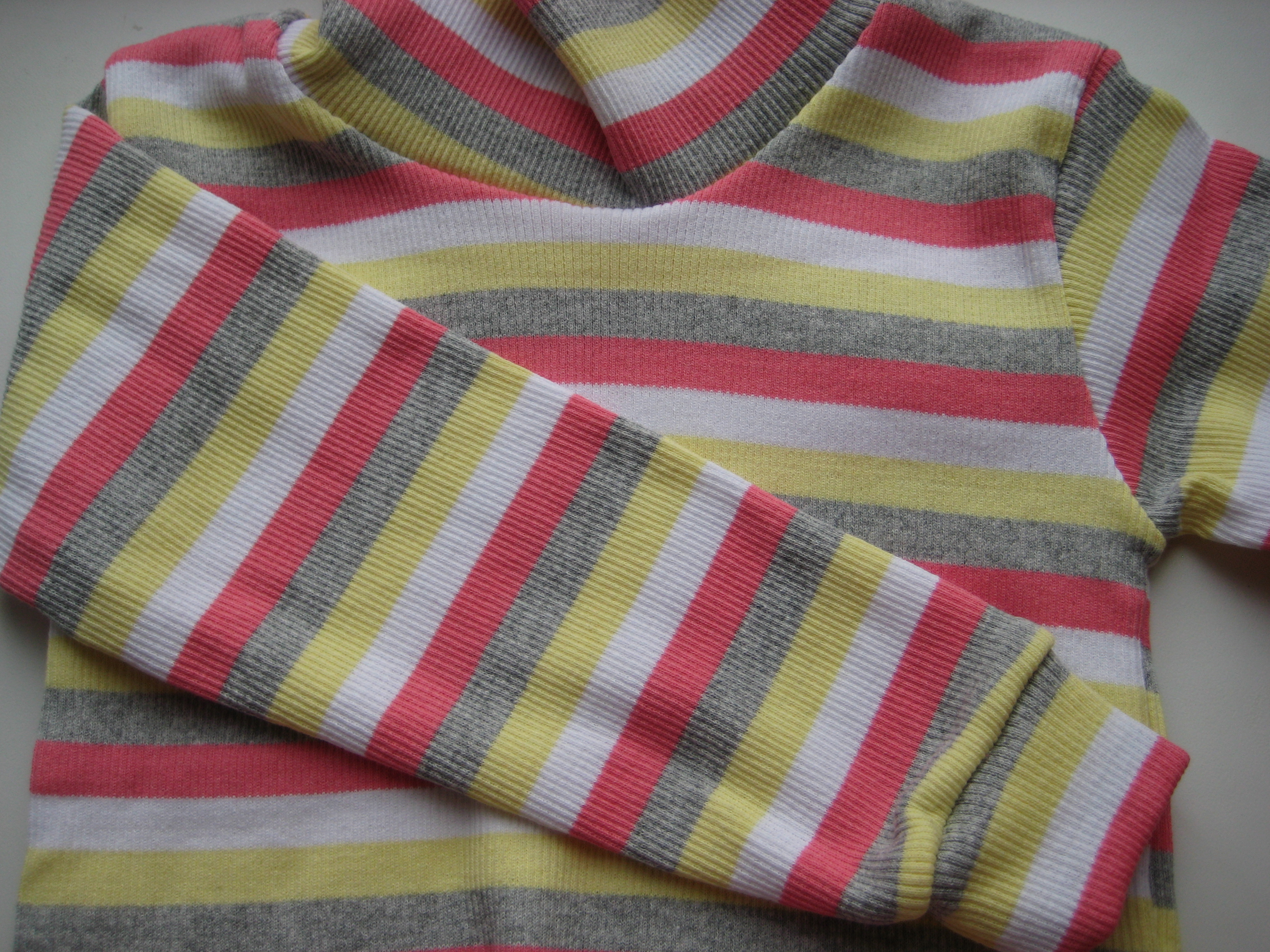 Замеры: длина 46см, пог 30см, длина рукавчика 29.5см. Цвет: зелено-серая полоска