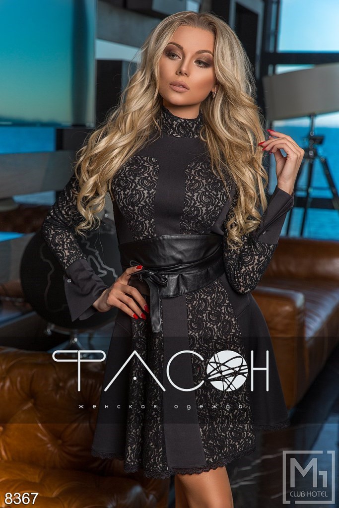 Платье с воротником-стойкой, декорировано гипюровыми вставками, на рукавах манжеты. Сзади потайная молния. Широкий пояс из экокожи в комплекте. Материал - дайвинг.4. На сайте 572 грн, отдам за 500.