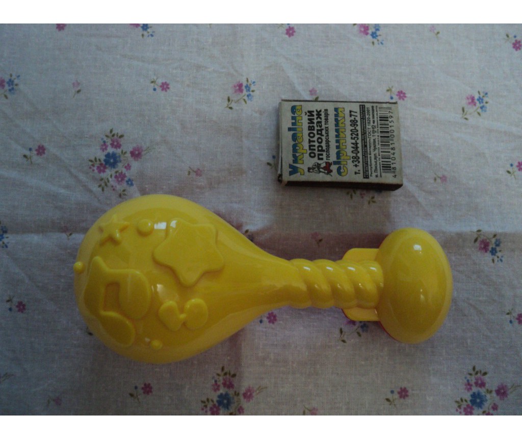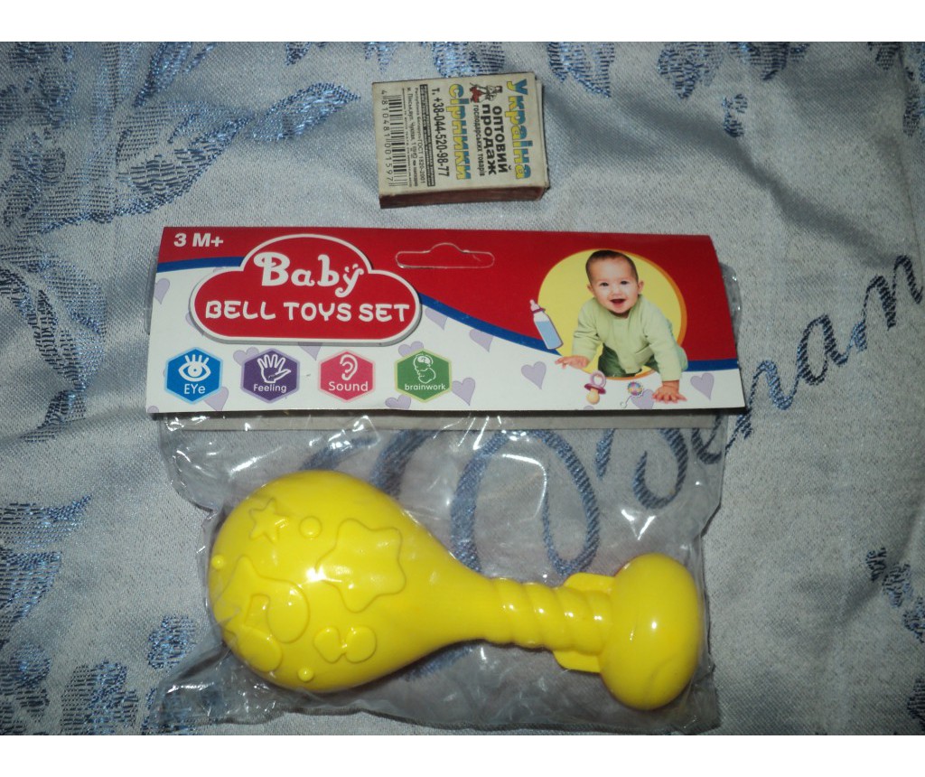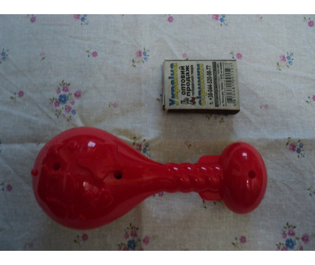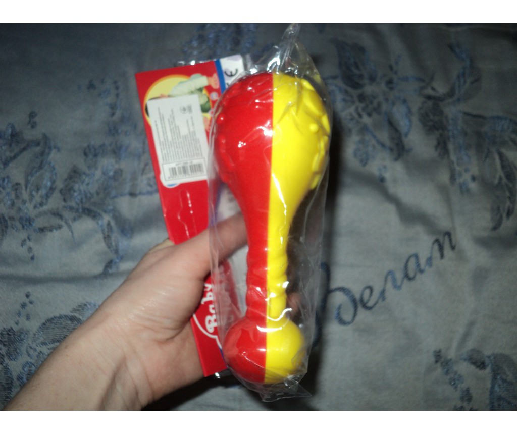 3. Погремушка двусторонняя: красная и жёлтая стороны. Качество хорошее, мне нравится. Цвет как на сайте.