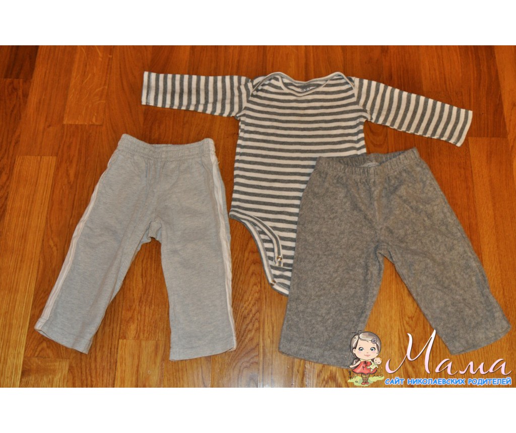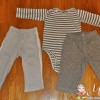 5)бодик в полоску+штаны флис+красная жилетка (на фото нет) Картерс, 6 мес. 40 грн. На бодике несколько пятен, выводить не пробовала. Штаны серые хб с белыми лампасами 4-6 мес (екв 15 грн)