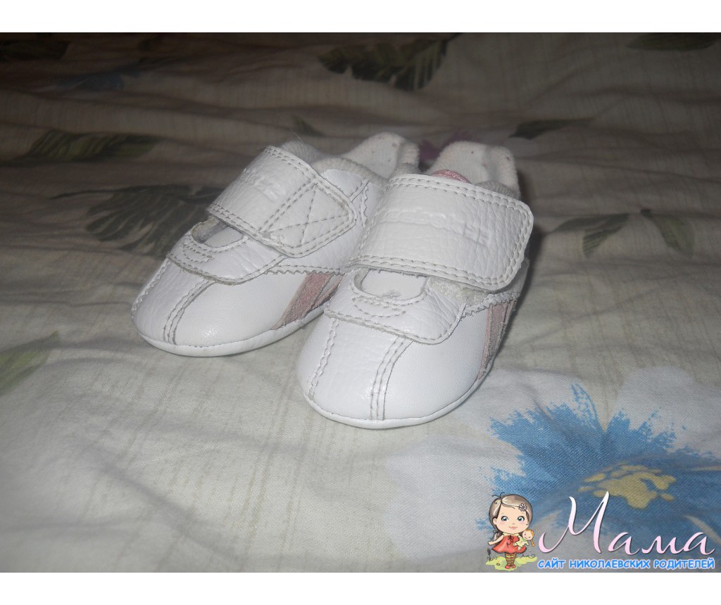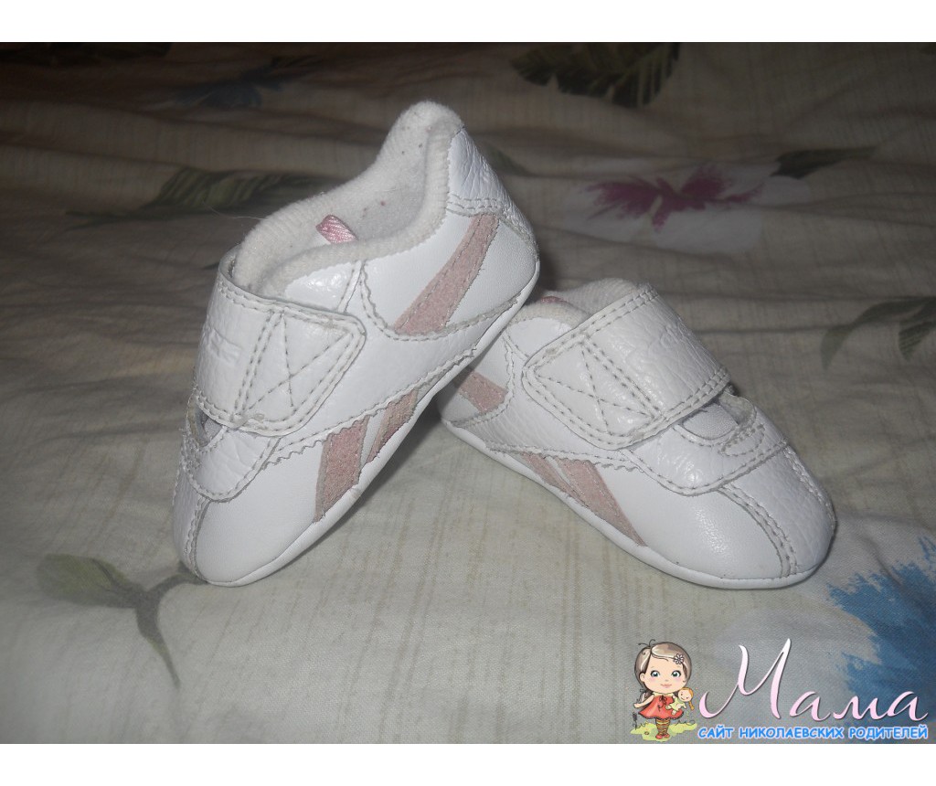 Меняю пинетки-кроссовочки "Reebok" (кожа, стелька - написано 8,0 см, реально - почти 11 см, но все равно манюсенькие...) на кашку "Карапуз". ЗАБРАЛИ!