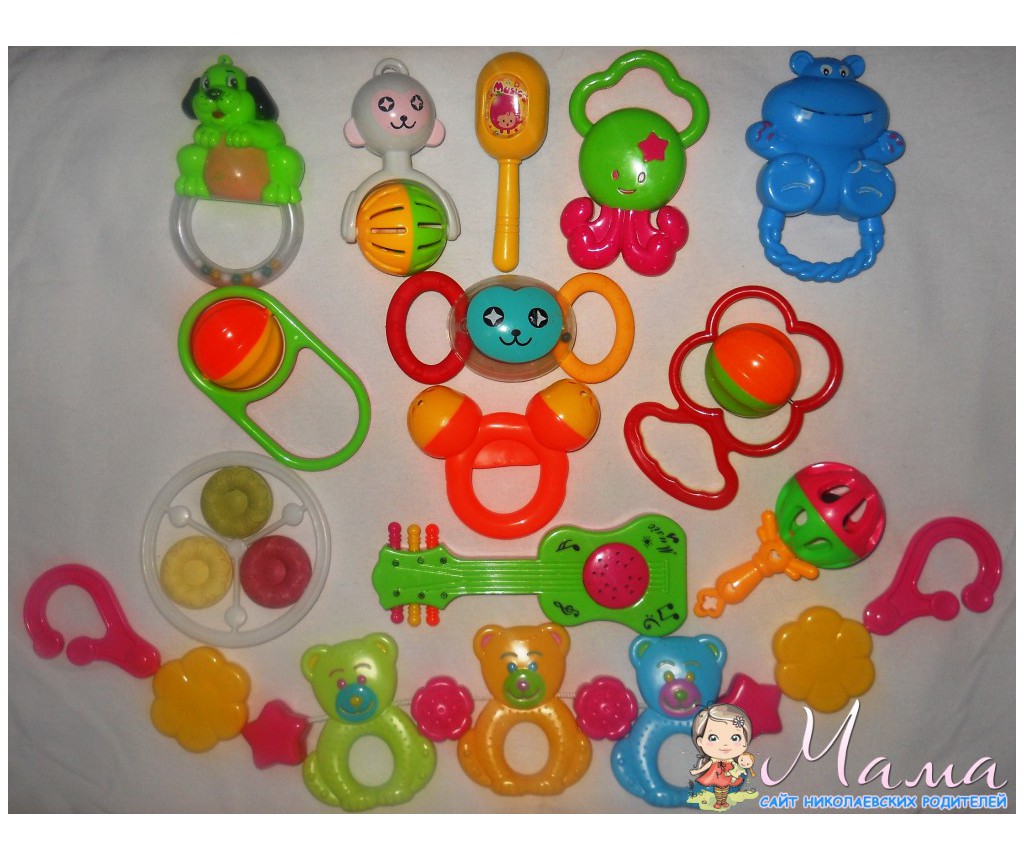 Меняю погремушки на маленькую упаковку памперсов "Active Baby" № 4 (ден. экв. 60 грн.) - если за все, если поштучно, то пюрешка "Карапуз" за каждую, кроме погремушки на коляску. За неё кашка + пюрешка. Возможен торг. ЗАБРАЛИ!
