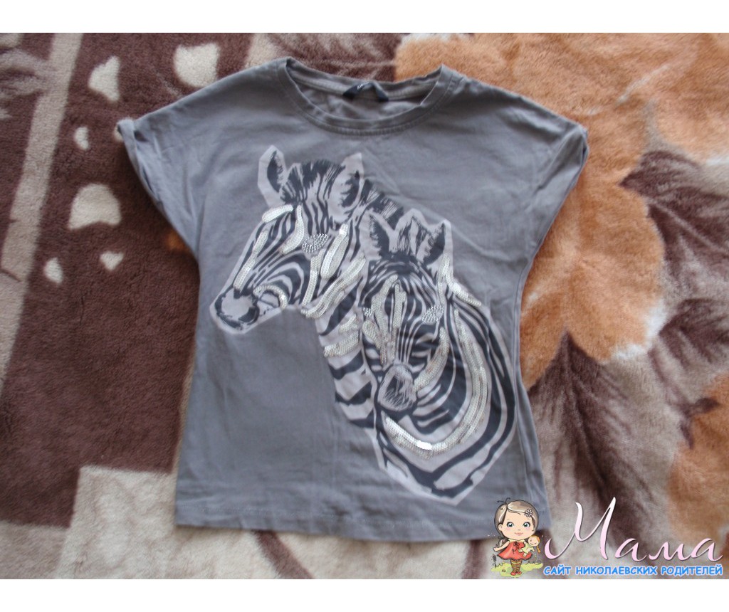 11. Футболка с зеброй George на 4-6 лет, состояние нормальное, немного побледнел цвет, с пайетками.