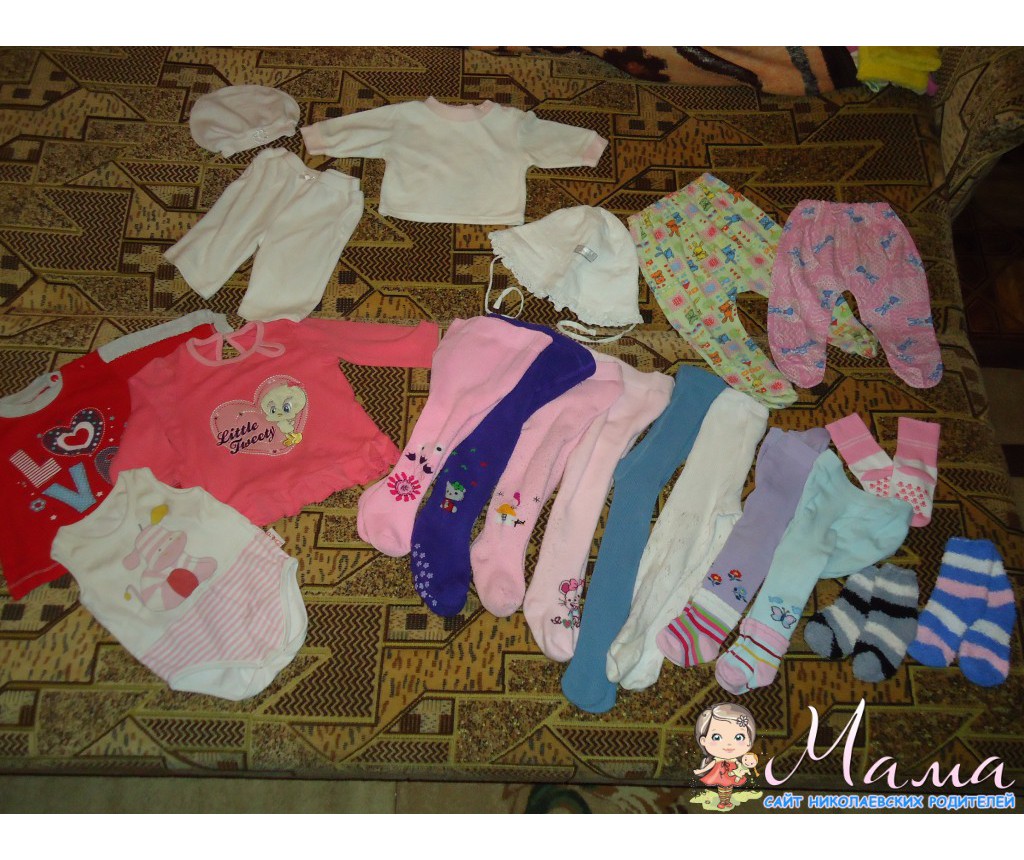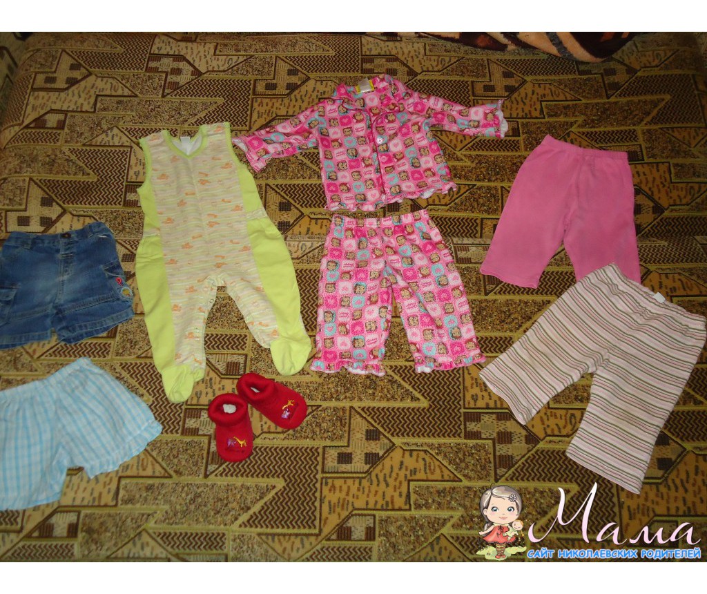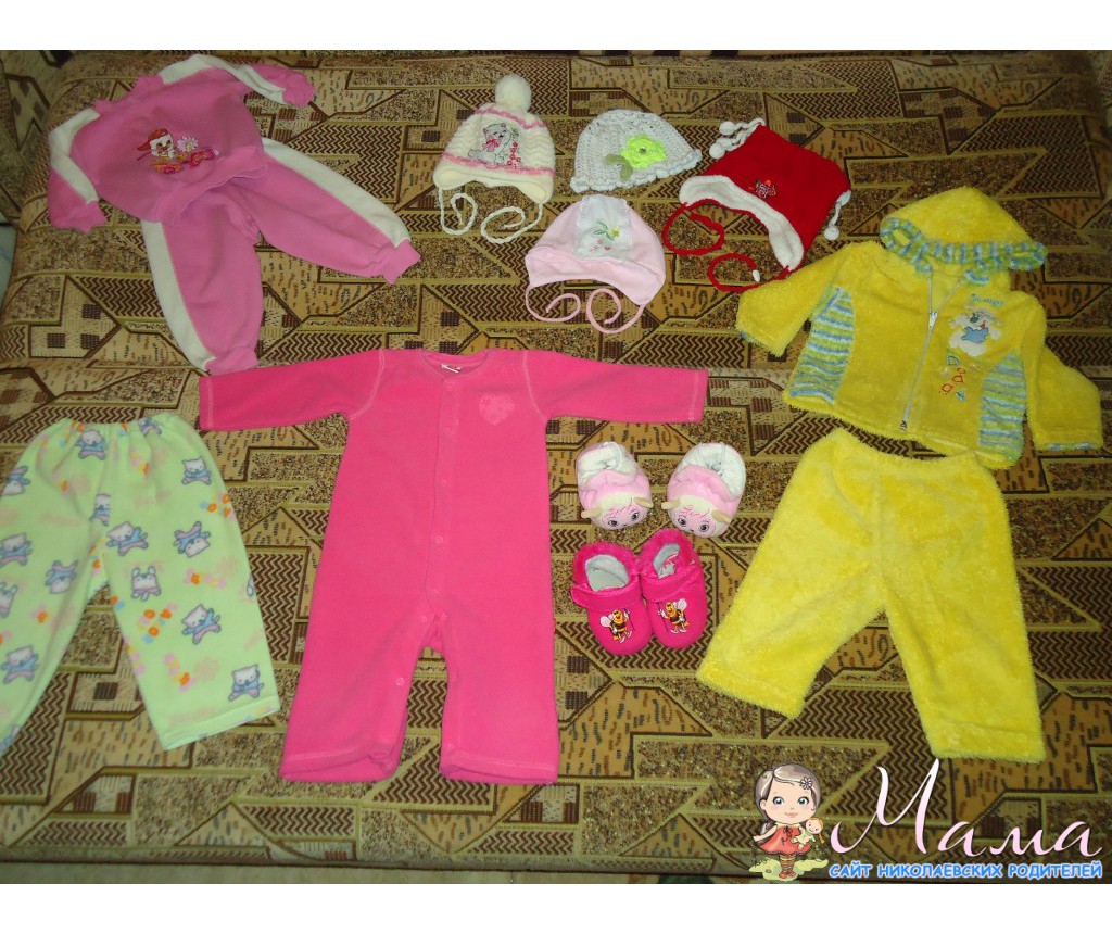 Фото 1 - все вещи до 6 месяцев, на остальных фото вещи разных размеров - от 3-х до 12 месяцев, зелёные флисовые штаники на 1,5-2 года. Пинетки-улитки и красные тапули до 7-8 месяцев будут, красные тапочки-носочки 12,5 по стельке - почти новые, очень удобные, с резиночкой, одели 2 раза и ножка выросла((