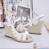 Меняю босоножки на танкетке Б/У, белые, такого типа (фото из инета), текстиль, р. 36, длина стопы 23 см., высота танкетки 10-11 см.