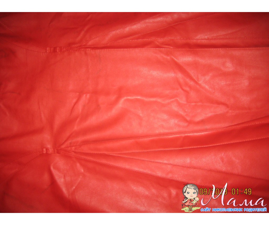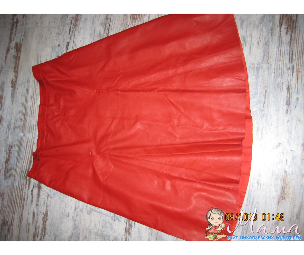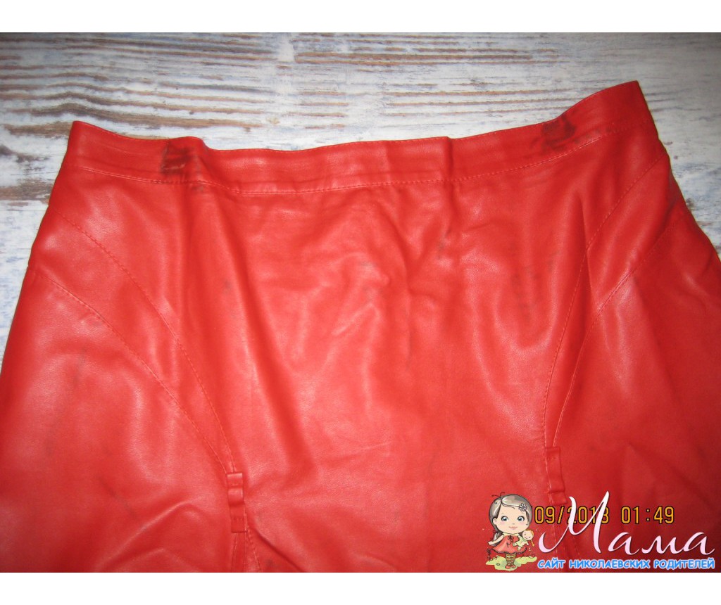 меняю,юбка красная из прес-кожи р-р 52-54,шилась на заказ.была абсолютно новая,на меня большевата и все в шкафу,отпечаталась от рядом висящих штанов -разводы,если не приглядываться-не видно,и от вешалки металической в местах зажимов-пятна,но кофтой скроет.меняю на большую пачку детского порошка