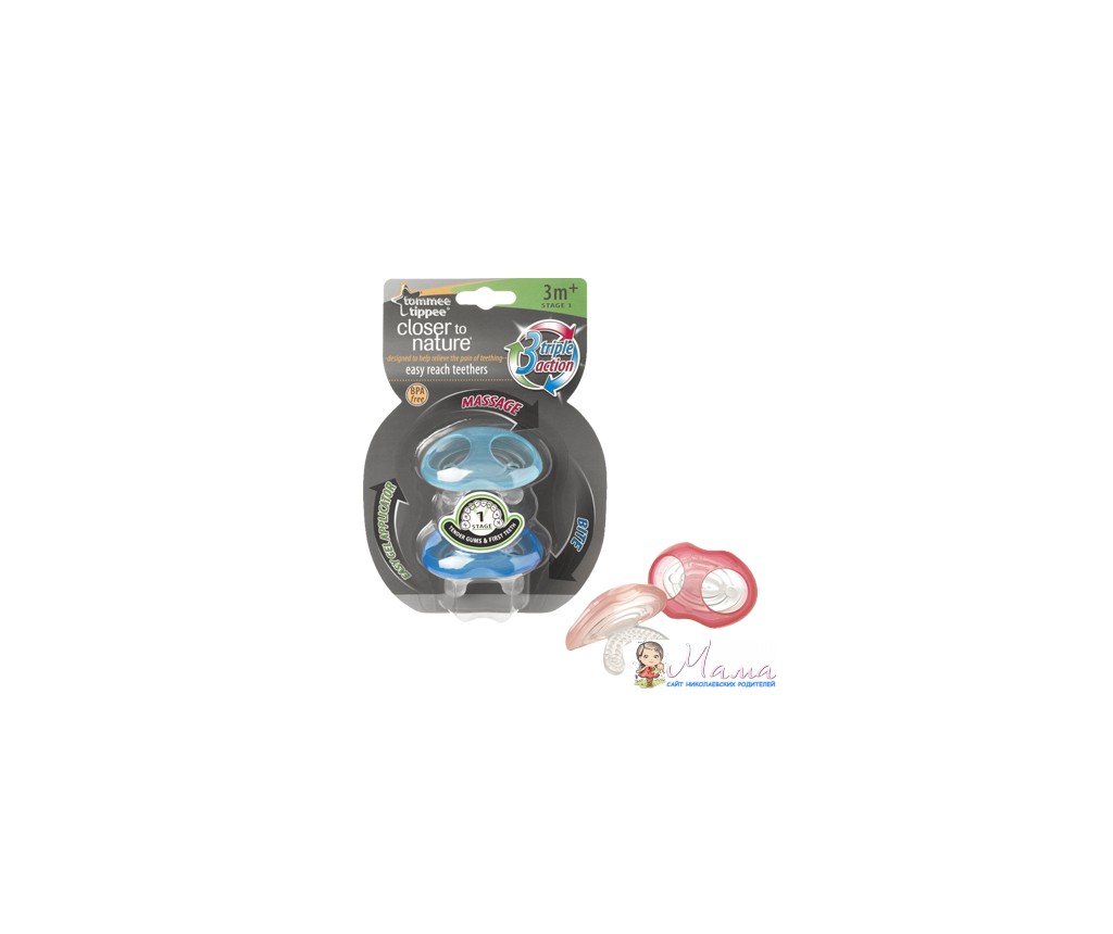 прорезыватели 2шт."первые зубки"от томми типпи,пачка вскрыта,мы их купили и с ними пошли в гости,где благополучно их забыли-забрали в год:)))+2 или 3 пустышки,тоже без упаковки(ребенок в 9 месяцев бросил соску и я покупала разные в надежде что будет сосать..но увы)