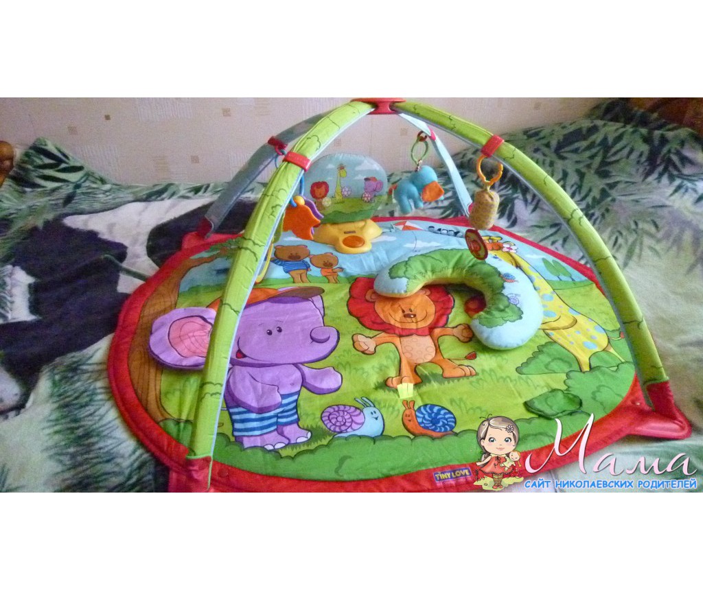 Коврик+ две дуги+зеркало+4 игрушки+подушечка+игровая панель(не работает).Шелестящие элементы на коврике+мячик пищит))))))