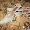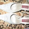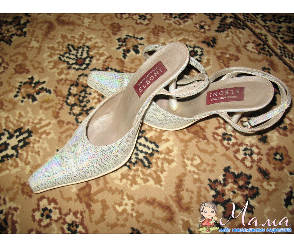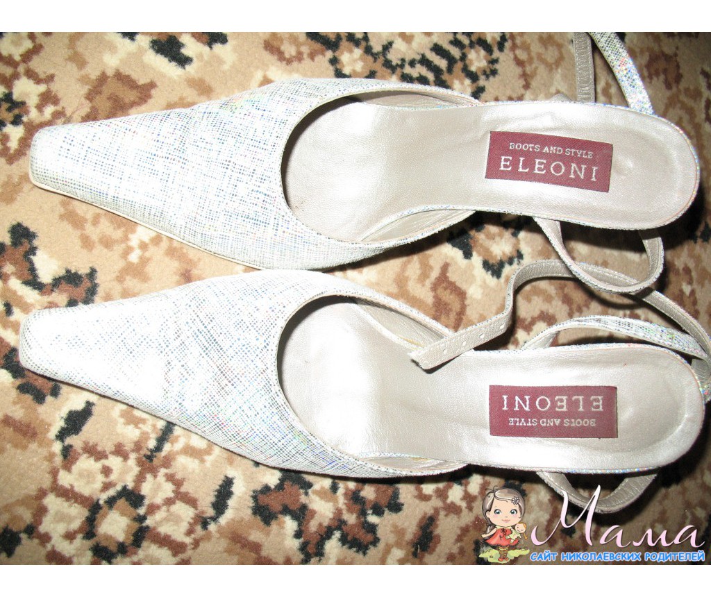 на 37 размер Босоножки – белые, переливаются, натуральная кожа внутри, состояние отличное, в живую смотрятся гораздо интереснее, одеты 2 раза на свадьбу, даже родные набойки не стерты - эквивалент 40 грн.