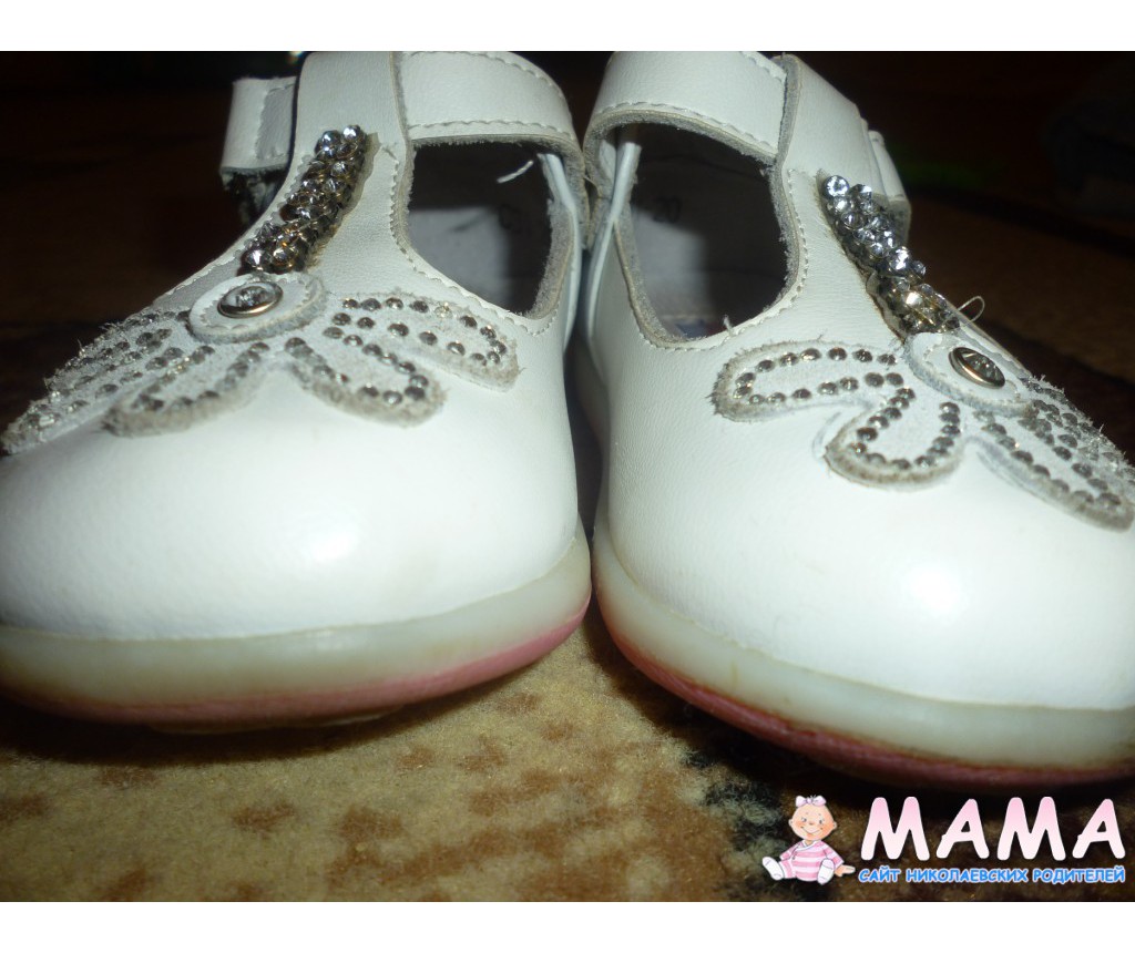 Обменяю обувь для девочки в отличном состоянии ,ребенок очень аккуратно носил:) Размер босоножек geox,туфель беленьких и ботиночек цветных 20 размер.Плюс комнатные тапочки на ножку 12-13см можна и на меньшую ножку но не на большею.За всю обувь(туфли,босоножки,ботинки,комнатные тапочки) хочу пачку памперсов Pampers 4+(либо 5 ).Если что-то интересует отдельно ,думаю договоримся на что-нибудь другое