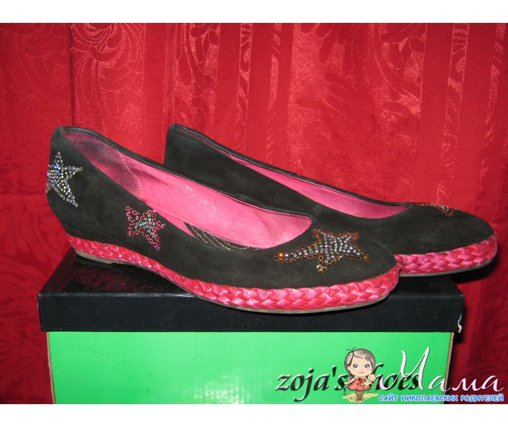 Меняю красивые балетки, натуральная замша, украшены стразами, размер 38-39(сниму замеры стельки если надо). В отличном состоянии, надевала всего несколько раз, все стразики на месте На подгузники huggies.
