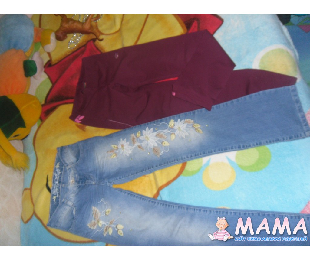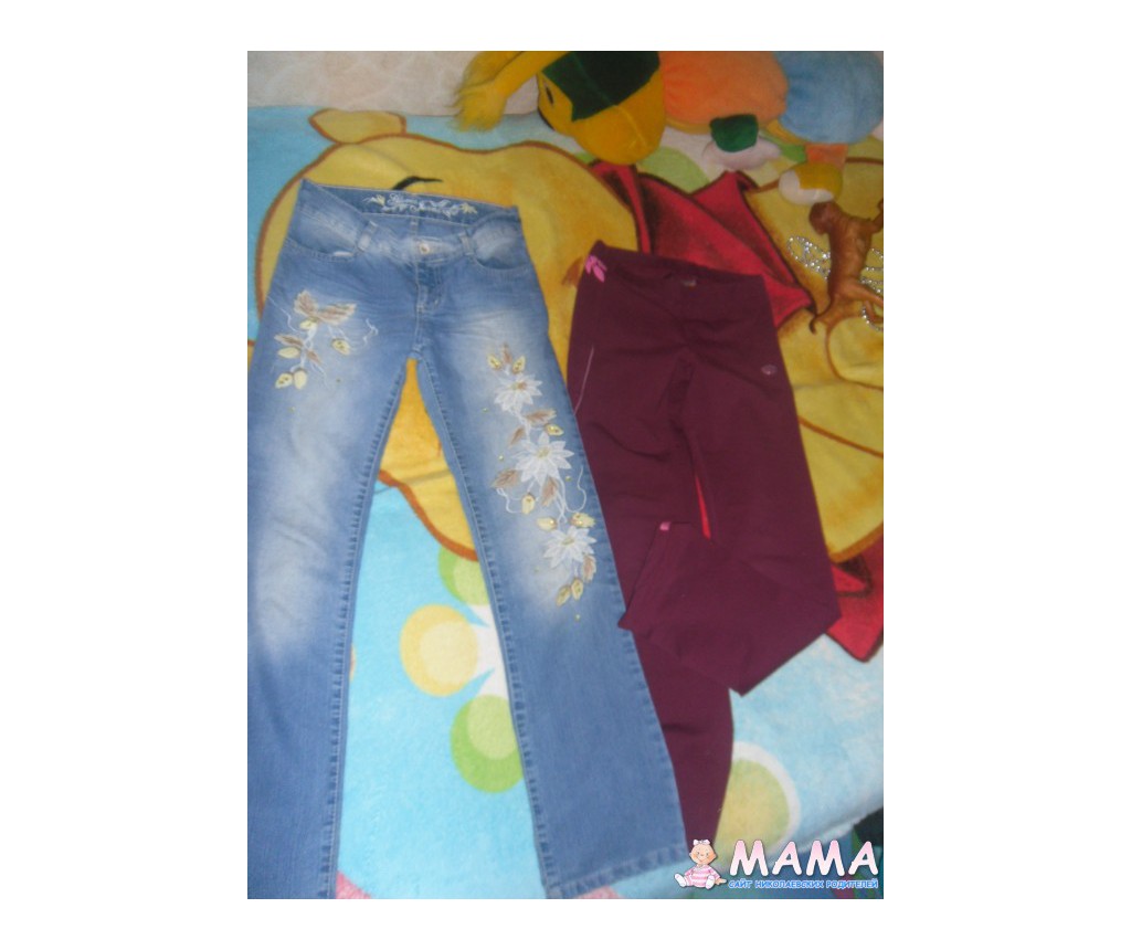 летние джинсики ГЛОРИЯ  ДЖИНС на девочку 9-12 лет  (в отличном состоянии) и спортивные брючки (для двора) на любой дезик- антиперспирант для  девочки-подростка.