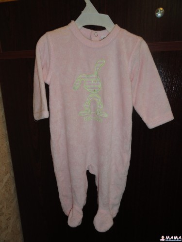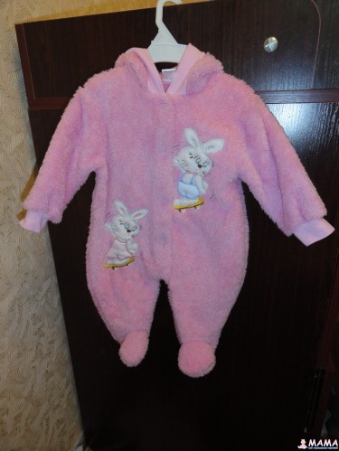 ЦВЕТ коричневый с розовым, коричневый мягкого приятного цвета. спереди кармашек. Пинетки цепляются на кнопки ( не потеряются)