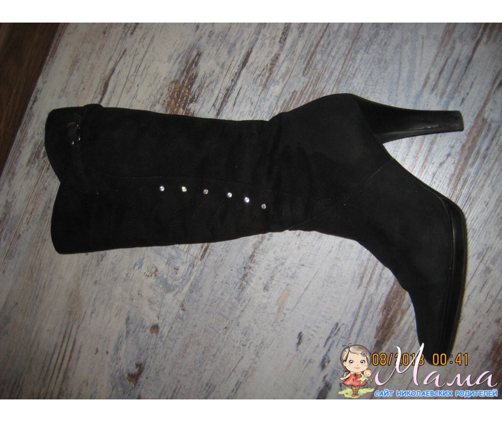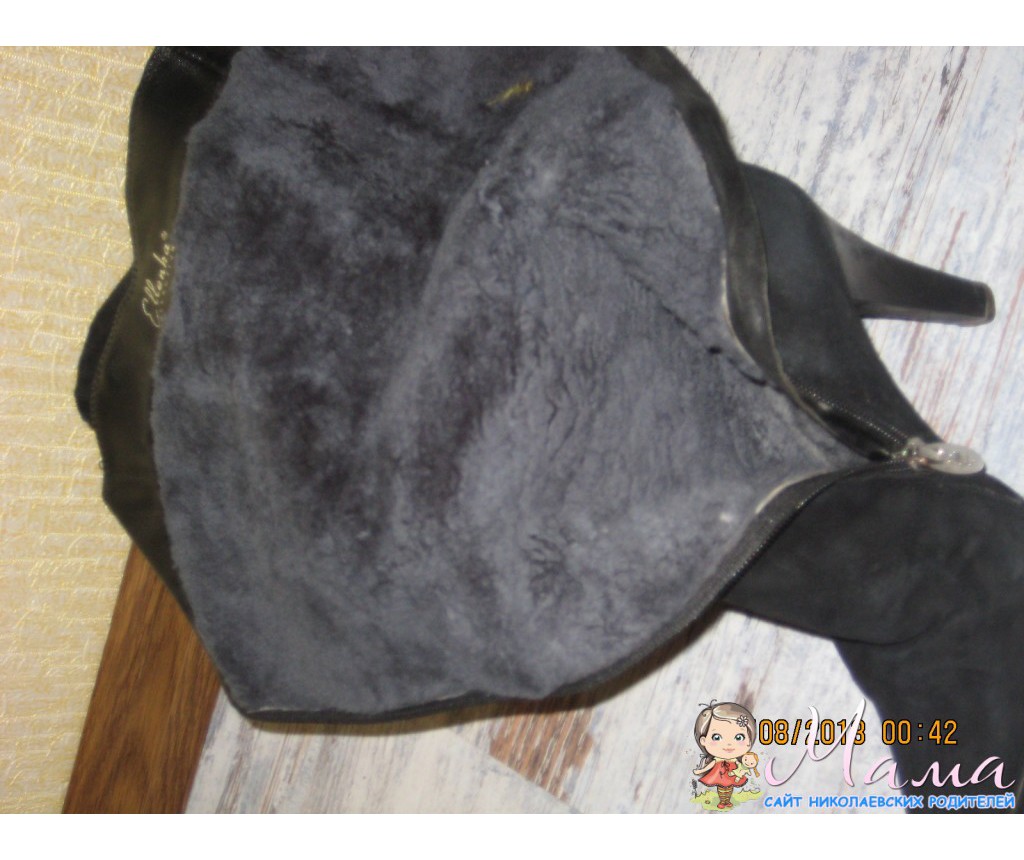 черные высокие на цигейке,замша натуральная,р-р 35-36,все целое