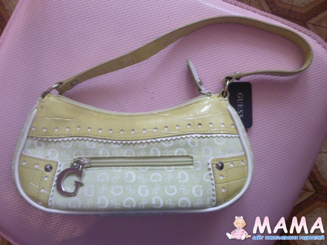 Новая сумочка Guess салатового цвета. Маленькая - 23 см. 2 кармана на молнии. Один - внутри; второй, поменьше - снаружи.