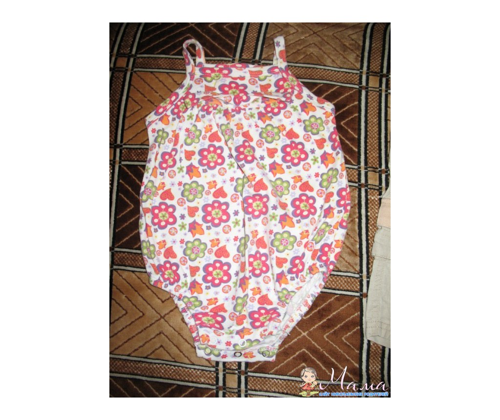 Песочник яркий трикотажный Замеры: ширина по подмышкам - 30см, длина- 44см. Состояние отличное.