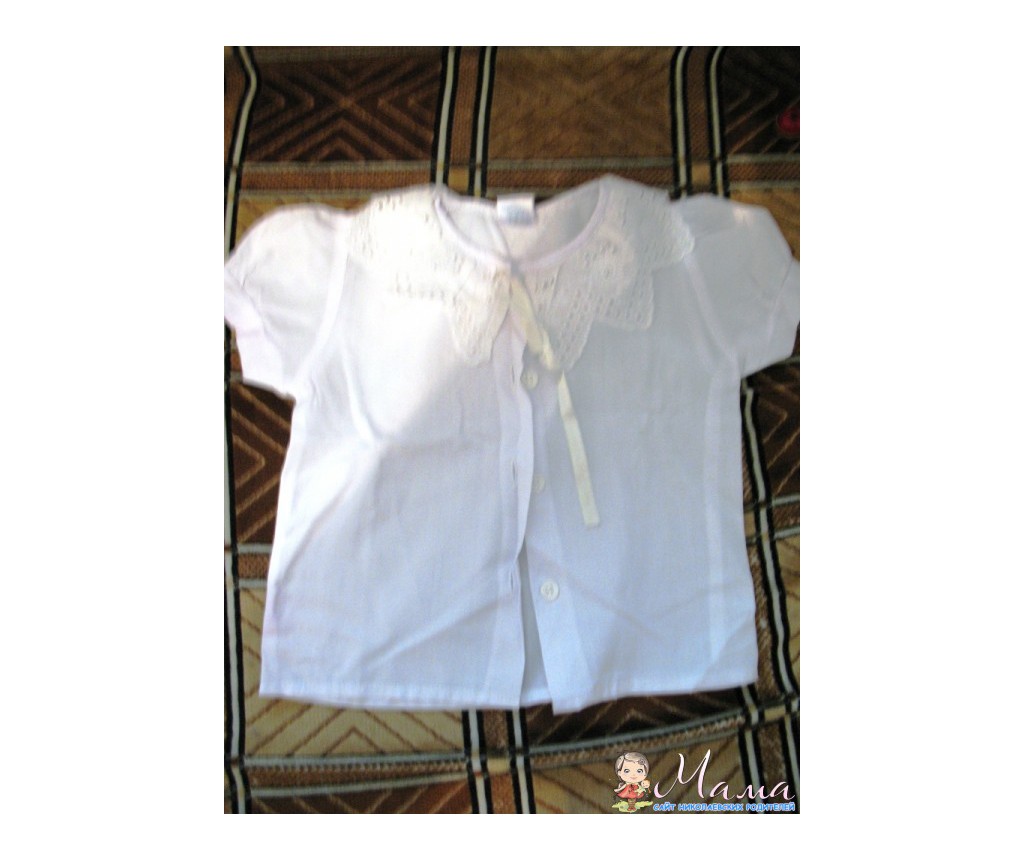 Блузка белая на рост 80 см. Замеры: ширина по подмышкам - 30см, длина- 32см. Состояние хорошее.