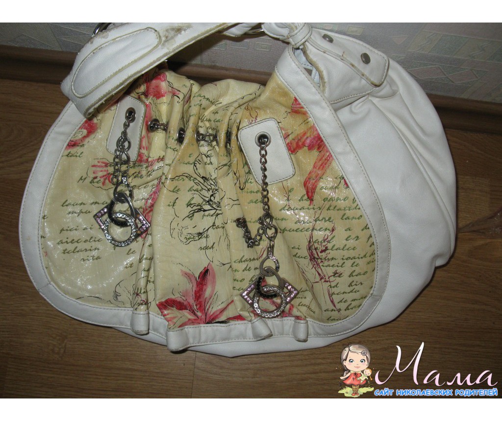 Сумка белая (заменитель) 40грн можно торг (потерта только ручка - легко заменить цепочкой, например. внутри все целое, очень качественная фурнитура)