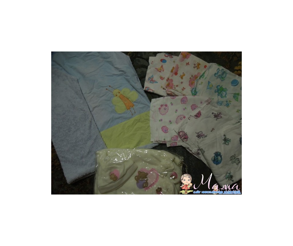 пеленки(3 байка, 3 ситец), полотенце-коврик,посудка+поильничек,альбом детский на 200 фото,пледик розовый теплый для девочек, набор пинетки, шапочка, пледик