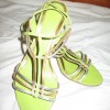 Стильные босоножки на 37 размер зеленая стелька, сверху золото с серебром, каблучек тоненький (9см) отлично смотрятся на ноге, состояние отличное. Меняю на фрукты для деток на суму 30грн.