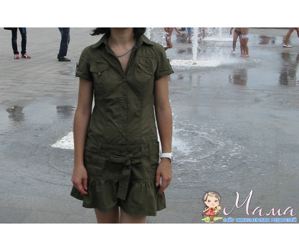 - платье, хаки , покупалось в Чехии, одевалось 2 раза, размер S(реально XS-S), 32-34