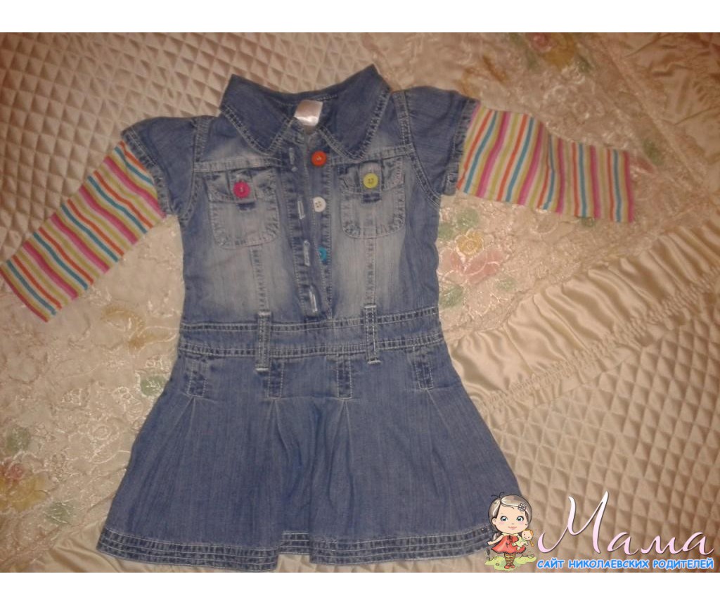Платье джинсовое e-vie engel 12-18 мес. Рукава – трикотажные в яркую полоску, что придает платью весеннее настроение. Очень хорошее качество, джинс плотный, без потертостей. Состояние отличное. Замеры: рукав от плеча 28см, рукав по нижнему шву 21см, ширина по подмышкам – 27-28см, длина- 45см. Ссылка Встреча район парка Петровского или Комсомольская по договоренности