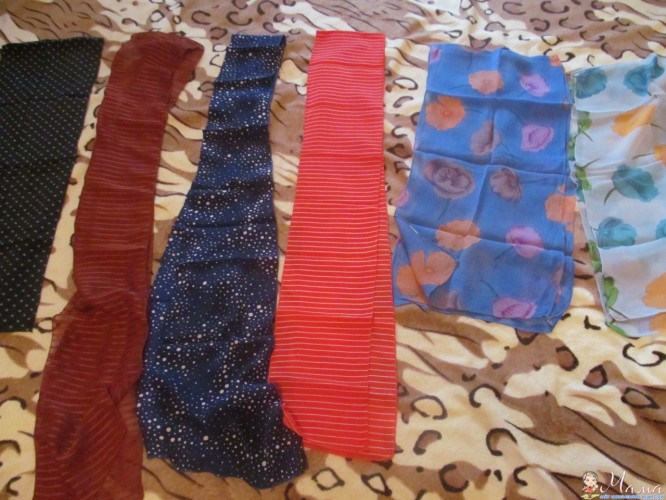 3. Шифоновые шарфики (желательно все в одни руки, некоторые сшиты из 2 частей)