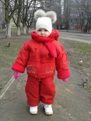 Фото 2 Зимний комбинезон SWEET TEDDI (98 см.) мы носили от 1 года до 4 лет, наполнитель – тепленький, но легкий сентипон. Курточка с капюшоном, замеры: рукав 35 см, длина по спинке 45 см, длина по плечам 34 см, полукомбинезон на регулируемых подтяжках, высокий, шаговый шов 34 см. Рукава и штанишки подворачиваются, внутри подкладка флисовая, змейки рабочие, внизу и на талии курточка затягивается. Подарю к нему полосатую шапку в тон комбезу и флисовый шарфик. Меняю на ДВЕ пополняшки Дикий сад 50 грн.