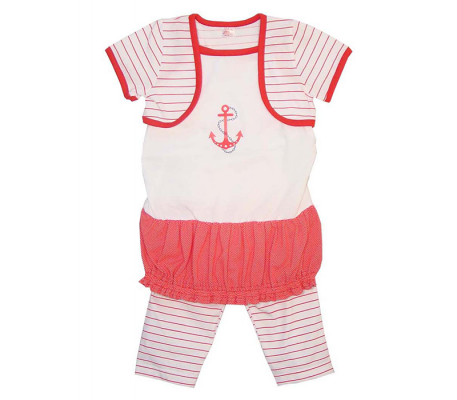 Комплект Морской Татошка 08107 на рост 86. Красного цвета. Комплект тройка. Балеро, туника на брительках и капри.