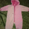 Демисезонный костюм-тройка: курточка, штаны и флисовый свитерочек. На ребеночка до 2 лет может и больше (Размер написан 38/80). Подкладка на флисе и курточка и штанишки, дополнительное тепло дает флисовый свитерок. Состояние очень хорошее, змейка рабочая, без дырок и других нюансов. Было очень удобно кататься на качелях – штанишки тепленькие. Замеры: курточка длина 36см, ширина по подмышкам 33см, рукав 30см (верхний шов), 23см (нижний шов); штанишки: длина по внешнему шву 45см, по внутреннему шву 25см.