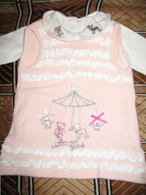 Сарафан с кофточкой Италянский до 1 года. Замеры: сарафан ширина по подмышкам - 27см, длина- 38см, кофточка - рукав 21см, ширина по подмышкам- 24см, длина 28см. Состояние отличное, очень мягенький и приятный к телу.