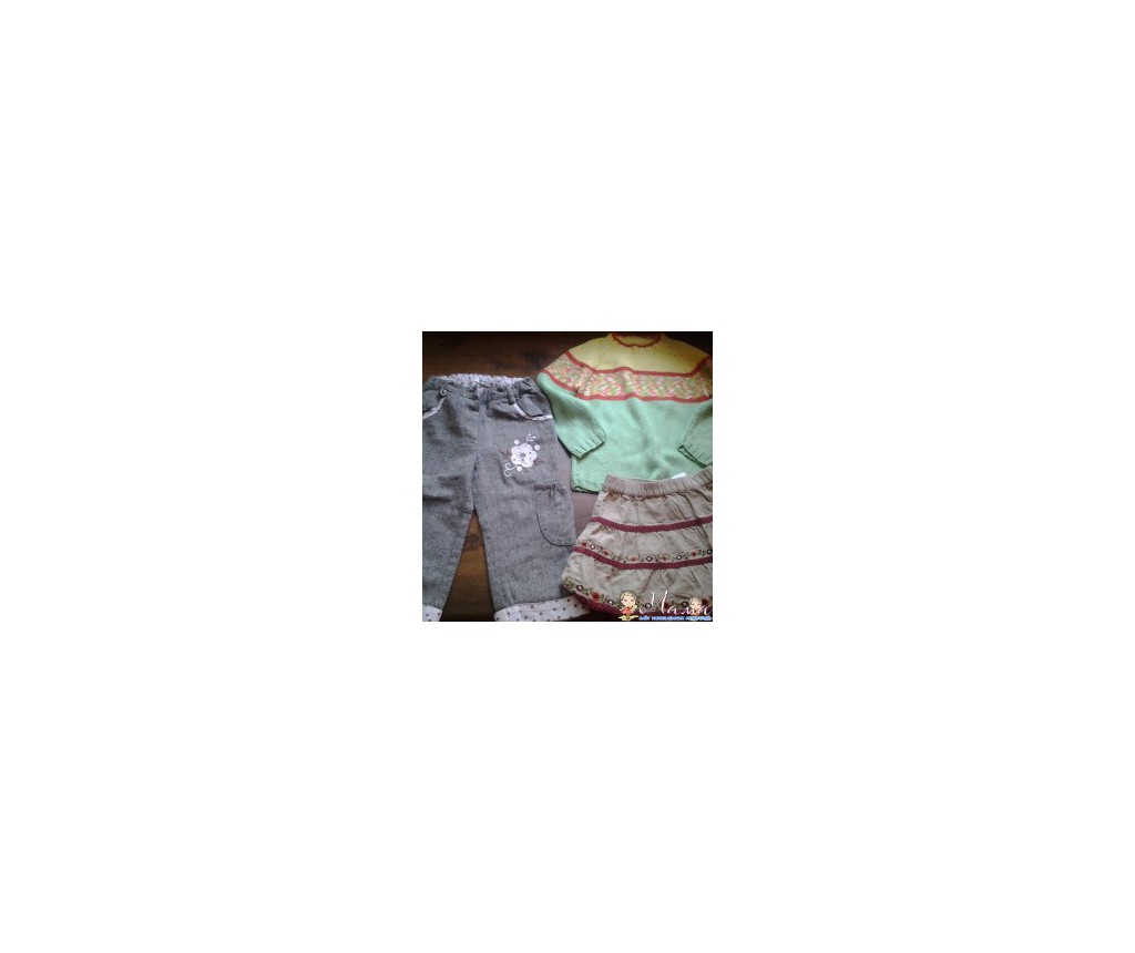 Демисезонный костюм-тройка: курточка, штаны и флисовый свитерочек. На ребеночка до 2 лет может и больше (Размер написан 38/80). Подкладка на флисе и курточка и штанишки, дополнительное тепло дает флисовый свитерок. Состояние очень хорошее, змейка рабочая, без дырок и других нюансов. Было очень удобно кататься на качелях – штанишки тепленькие. Замеры: курточка длина 36см, ширина по подмышкам 33см, рукав 30см (верхний шов), 23см (нижний шов); штанишки: длина по внешнему шву 45см, по внутреннему шву 25см. Меняю на пополняшку Дикий сад 50 грн