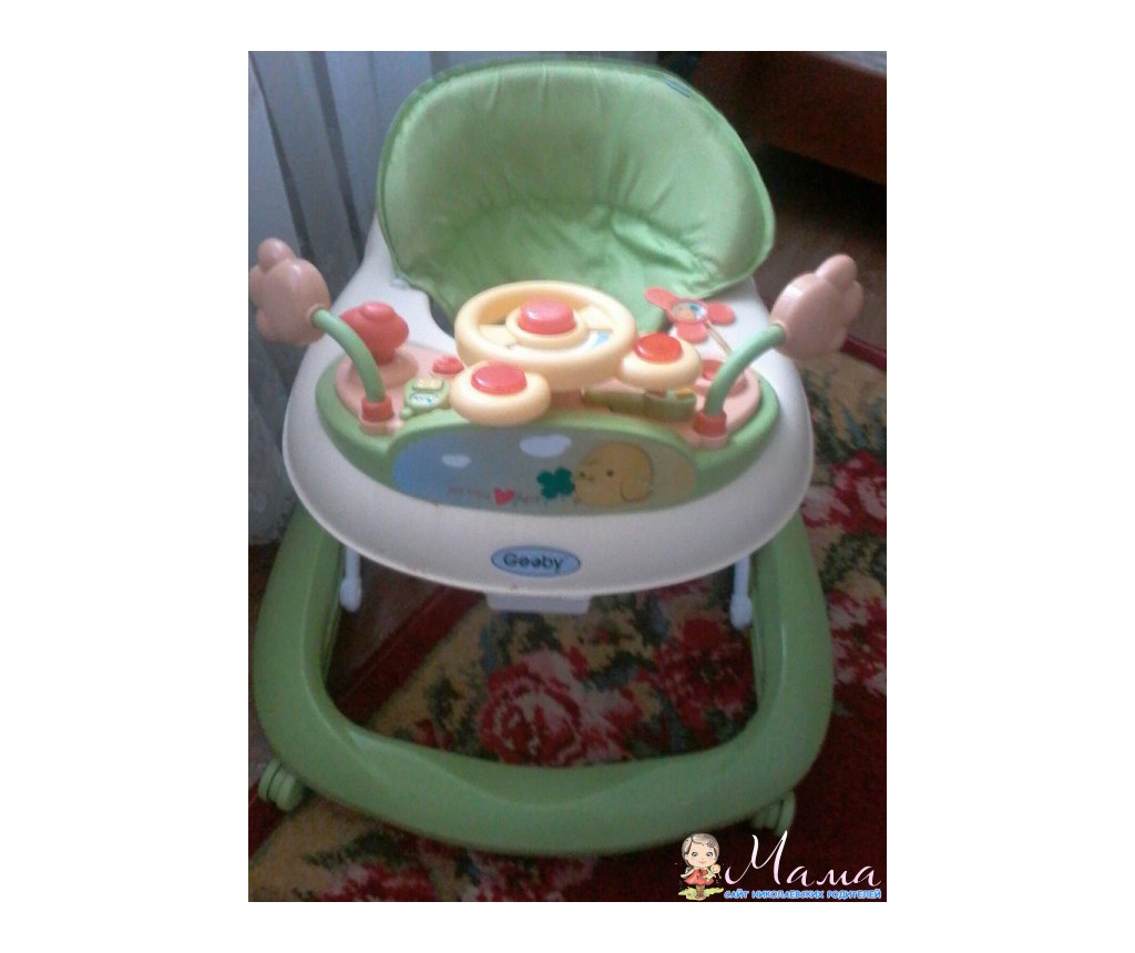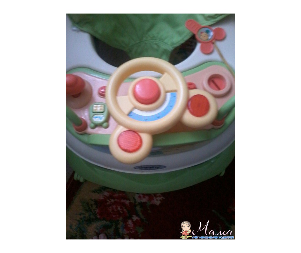 Цвет салатовый, "машинка". Игровая музыкальная панель, высота регулируется, колеса фиксируются.