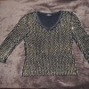 46-48 р-р. Тёмные брюки в полоску из тонкого материала с низкой талией. ПОТ 41 , длина 108.