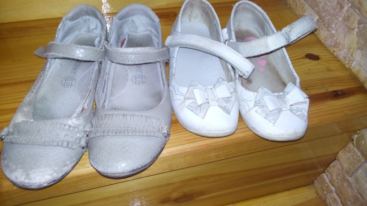 ЗАБРАЛИ. Отдам туфли белые размер 32 серые 34, кожа. состояние - двор, огород