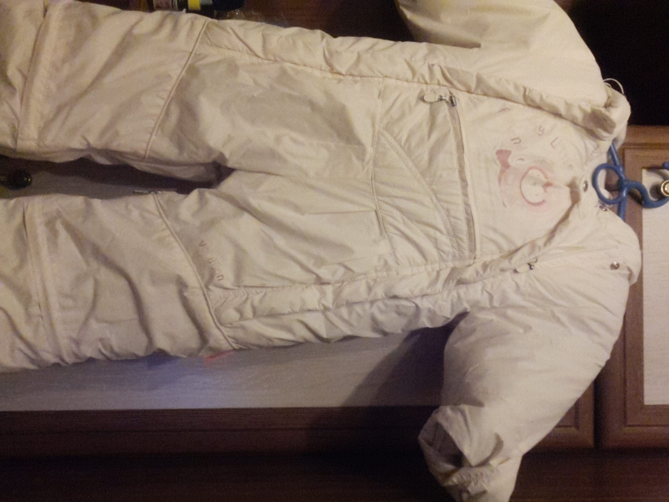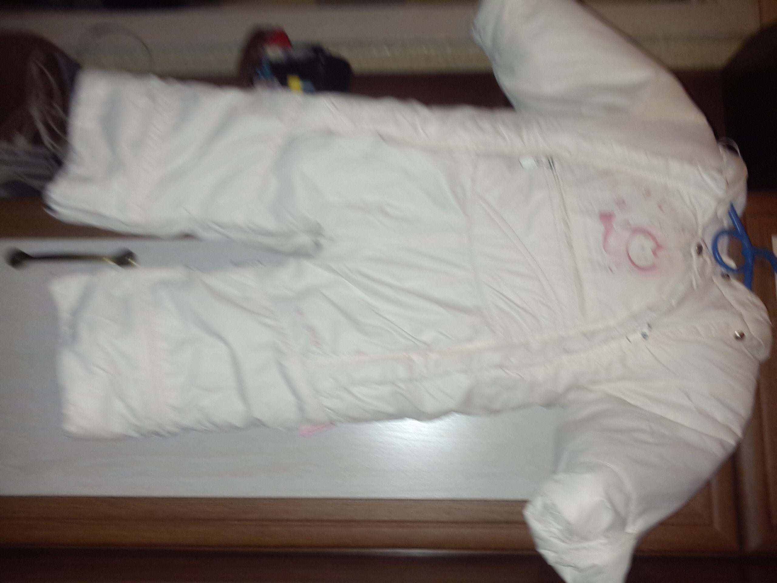 Куртка American Project, на 9-10 лет. Очень теплая, зимняя, но постиралась вместе с красным. Белые полосы стали розовыми. Для швеи - можно их заменить.