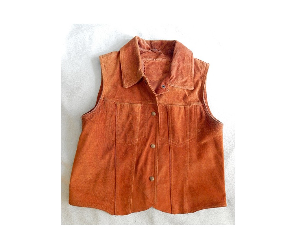 Жилет женский кожаный/замша, размер S. Требуется основательная чистка.