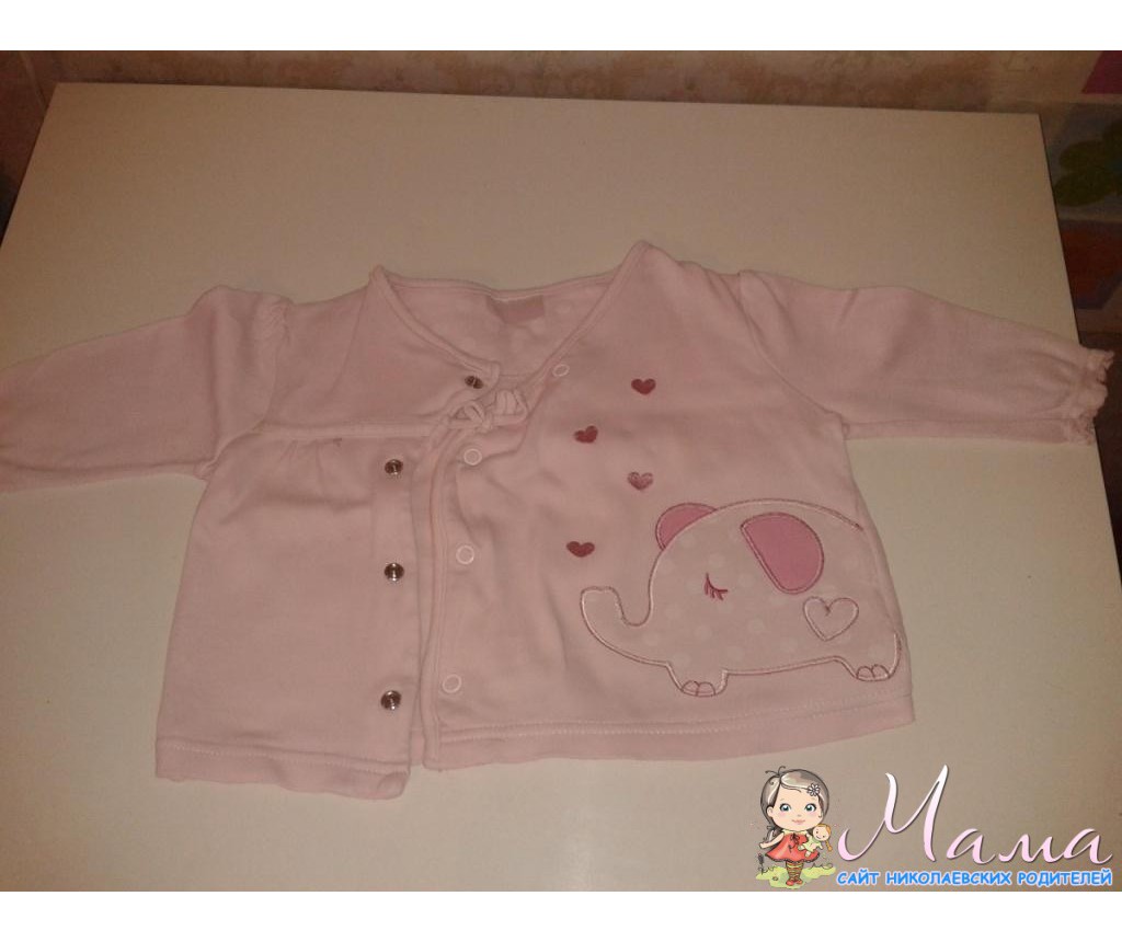 Нежно розовая кофточка 3-6 мес. 68см, 8,5кг, рукав от плеча 20см, ширина 30см.