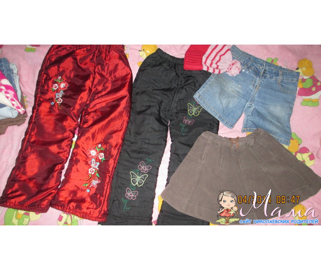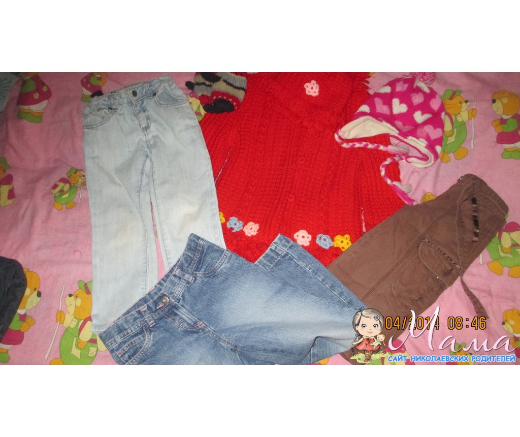 отдам одежду для девочки 4-5 лет, состояние вещей на 4, больше подойдут в деревню или на дачу: 2 теплых штанов на сентипоне, джинсы, шапки, вязаная кофта+ шапка,юбка вельветовая и т.д!